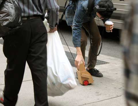 Los robots fueron creados por Kacie Kinzer, y constaban de un simple mecanismo de ruedas motorizadas, con una ligera apariencia antropomórfica (una caja de cartón donde dibujó unos ojos y una sonrisa) y un cartel/banderín que decía donde querían llegar. A estos se les dio la misión de cruzar el parque Washington (Nueva York) desde la esquina sudoeste a la esquina noreste. Para atestiguar los resultados, su creadora los seguía de cerca con una cámara oculta en el bolso y observaba las interacciones de los viandantes con sus máquinas.