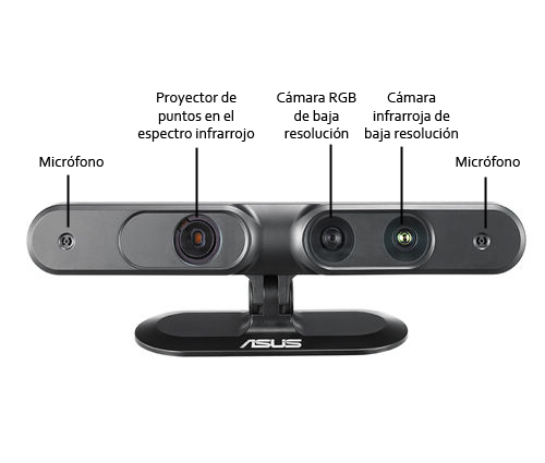 - Como sistema de visión utiliza una cámara USB 3D de ASUS la XTION PRO LIVE, pero mejorada con la tecnología de la empresa PrimeSense . Esta empresa lo que hace es proporcionar un middleware que permite visualizar una escena en 3 dimensiones creando un único stream de imagen, con los datos de los sensores que posee, recogiendo la profundidad y el color de la escena, al igual que hace un ser humano. Ver en el resumen de software del robot sobre este middleware. Además este sensor incluye micrófono: